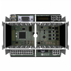We used the FOC from TMC4671 and programmed an own positioning software control running on an STM32 mikrocontroller. The motor controller supports further digital IO for opening/closing locks, motion detectors, light barriers, special function inputs and so on.